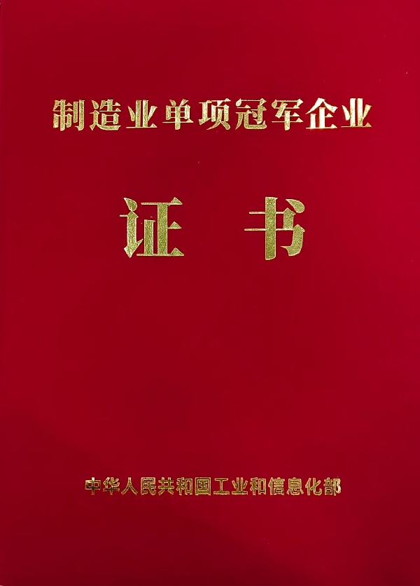 公司正式入选“第八批制造业单项冠军企业”